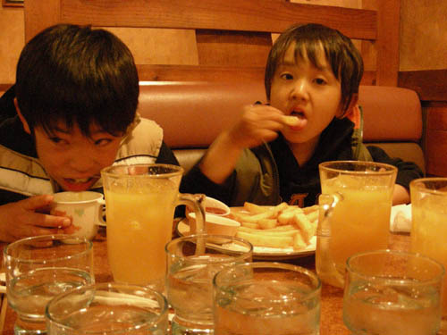 長男は昼をあまり食べなかったせいか、お子様ランチとスパゲティを