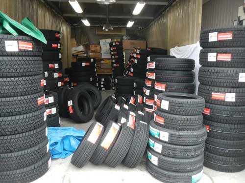 仕事のブログでも書きましたが、今日、スタッドレスタイヤが約400本入荷しました・・。